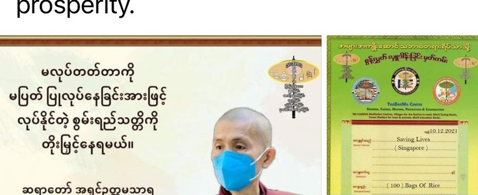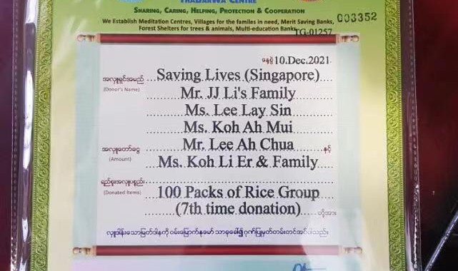 The abbot of the Thabarwa Nature Centre (Thanlyin Myanmar) sincerely thanked the charitable people from Singapore’s “Saving Lives” and Goh Joo Hin Pte. Ltd. He was highly appreciative of the fact that despite the pandemic, they did not forget to donate rice to the elderly, the weak, and the disabled who needed help. He also wished all generous donors good health, prosperity and happiness in their lives.