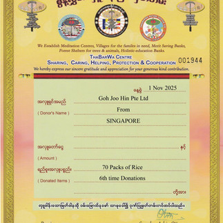 Amid these challenges, in November 2025, Goh Joo Hin Pte. Ltd., a Singapore-based company, generously supported Saving Lives in donating 70 bags of rice to the Thabarwa Nature Center for the elderly in Dineyin. While modest in quantity, this contribution carries care and hope, bringing a sense of relief and warmth to the residents during uncertain times.